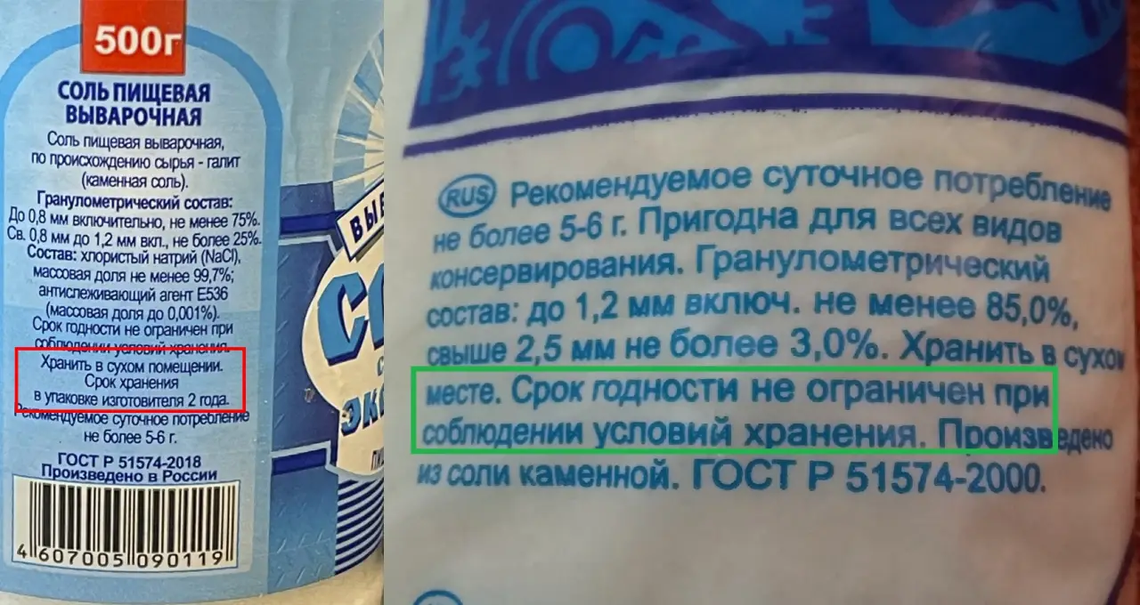 Да что там говорить, срок годности указывается даже на поваренную соль, хотя фактически этот продукт может храниться вечно – лишь бы не было доступа воды.