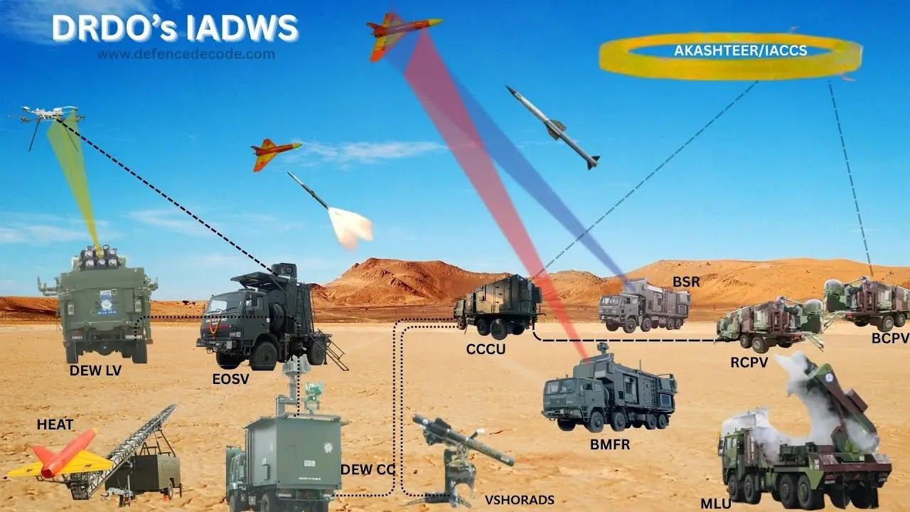 IADWS — это многоуровневая система противовоздушной обороны, включающая в себя все отечественные ракеты класса «земля-воздух» быстрого реагирования (QRSAM), усовершенствованные ракеты малой дальности (VSHORADS) и мощное лазерное оружие направленной энергии (DEW).