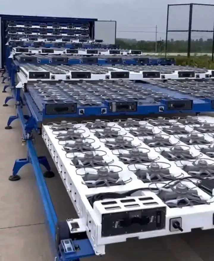 Платформы по своей конструкции похожи на уже существующие поддоны, но отличаются размерами и вместимостью. Так, в рекламном ролике показаны платформы с 54 ложементами. Беспилотники располагаются в виде двух квадратов 5 х 5, и ещё 4 ед. находятся рядом с ними. Общая вместимость такой установки — 648 БПЛА.