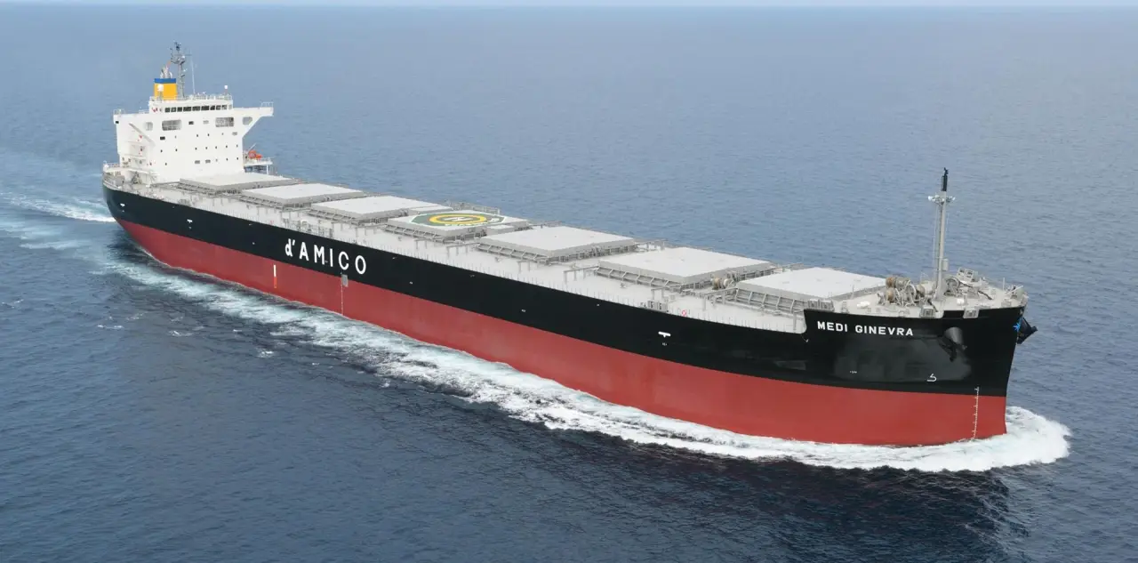 Сухогруз Medi Ginevra. Длина 228 метров, ширина 36 метров, дедвейт 87 тысяч тонн. Скорость – 14,8 узлов. Конструктивно не так трудно переоборудовать этот сухогруз в корабль для запуска аэростатов и «Гераней»