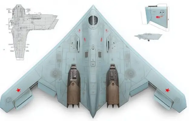 Конечно, формой «самолет» очень похож на небезызвестный С-70 «Охотник» со вторым двигателем и пилотируемый. Уже из концепции «летающее крыло» понятно, что о скорости и сверхманевренности, которые до недавнего времени были козырями российских авиаконструкторов, здесь речь не идет. Про малозаметность говорить можно, в космос такое тоже вряд ли сможет полететь. Новых двигателей, способных на такие полеты у нас не заявлялось. Нет, конечно, наши фантазеры, дай им волю, они не только Д30Ф начнут выпускать, но и Р15В-300. На диване это очень просто сделать.