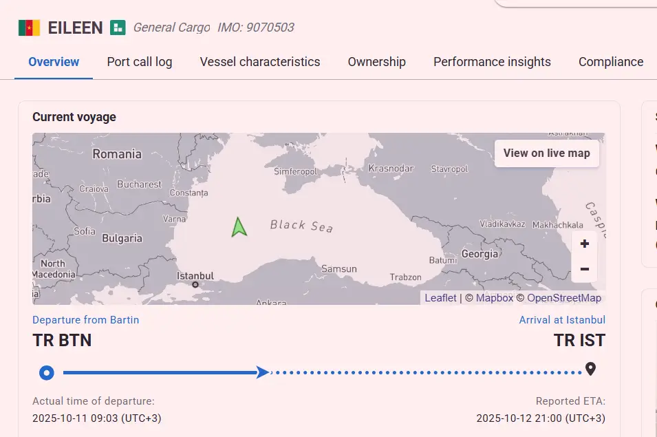 При этом сайт Marinetraffic сообщает о том, что сухогруз выполнял из порта Бартын (Турция) в порт Стамбула. Зачем в таком случае коммерческому судну под камерунским флагом понадобилось уходить в центральную часть Чёрного моря?