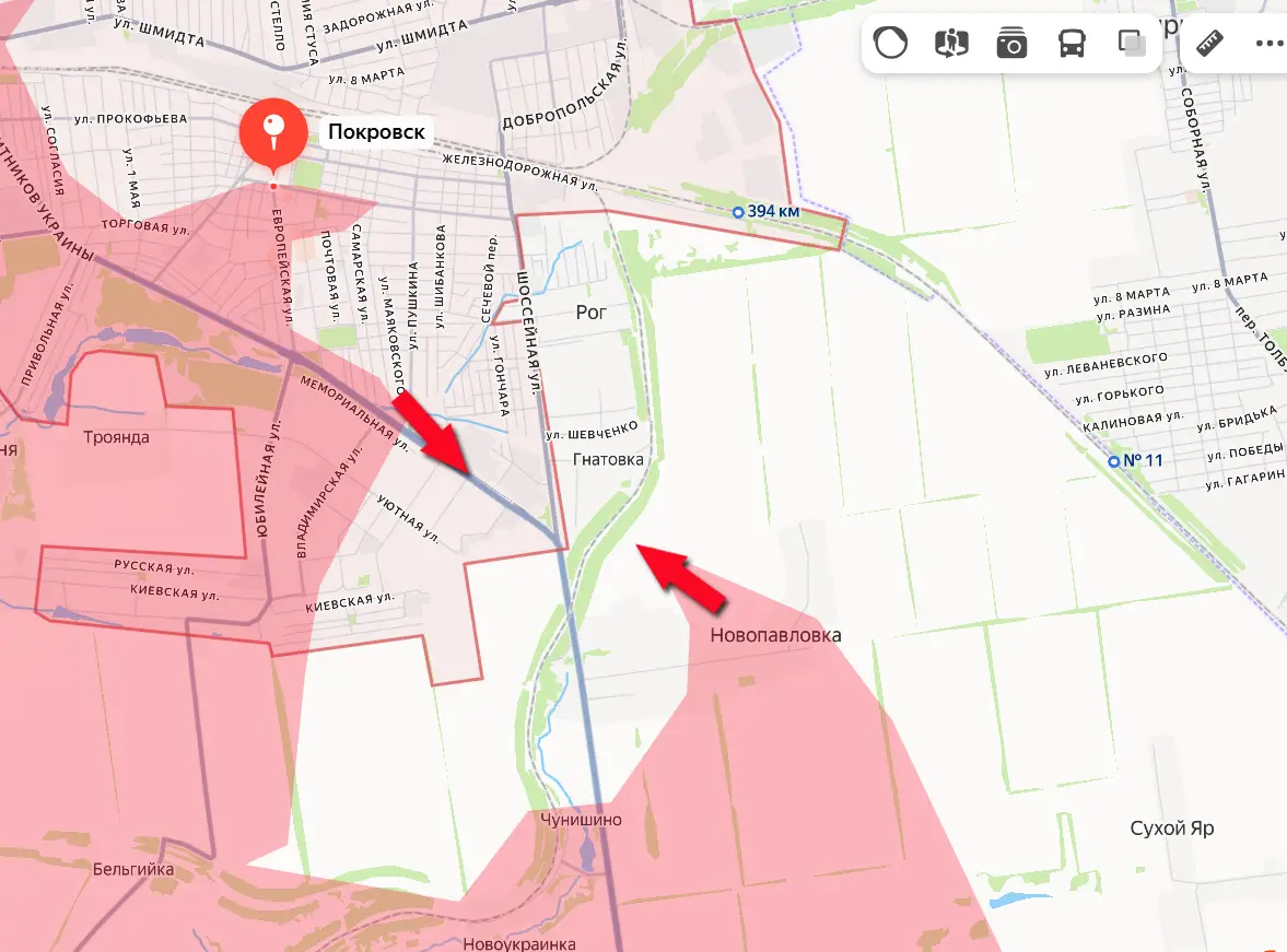 Расширен и северный фланг охвата Покровска (Красноармейска). Фиксируется продвижение подразделений ВС РФ в районе села Шахово, где продолжает «контрнаступать» Сырский.