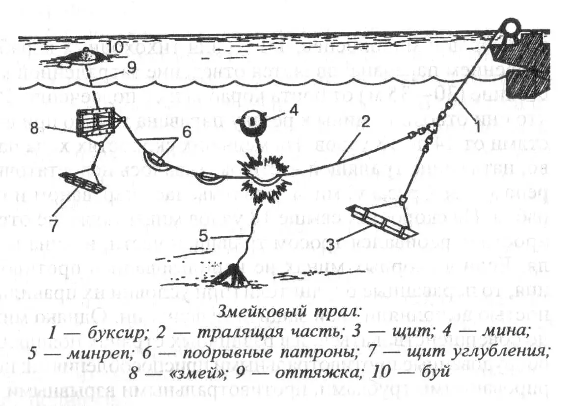 Траление осложнялось тем, что в одном и том же минном заграждении ставились мины самых различных систем и типов: якорные, антенные, донные неконтактные и др. Мины оснащались противотральными устройствами и всевозможными ловушками. Особенно трудно было бороться с донными неконтактными минами, которые имели магнитные, акустические или комбинированные неконтактные взрыватели, обладавшие высокой чувствительностью. В этих минах устанавливались приборы срочности, приводившие мину в опасное положение через определенное время после постановки (от одного часа до нескольких месяцев), и приборы кратности, приводившие мину в боевое состояние после многократного прохождения над ней корабля. Большую опасность для судоходства представляли плавающие мины. Ветры и течения переносили их даже в отдаленные районы, где применение минного оружия было вообще невозможно.