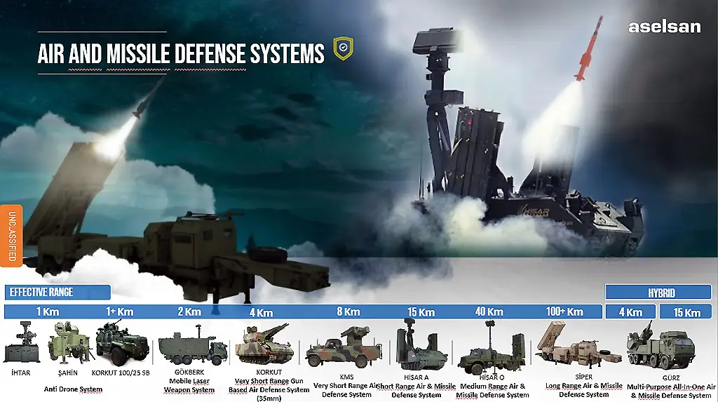 На дальностях до 2-4 км с воздушными целями должны бороться артиллерийские комплексы серии Korkut. На базе общих решений и компонентов разработано несколько таких изделий отличающегося облика и с разными возможностями. Так, в качестве средства перехвата БПЛА предлагается ЗАК Korkut 100/25 SB. Он построен на базе серийного бронеавтомобиля и вооружён 25-мм автоматической пушкой. Поиск целей и наводка осуществляются при помощи видеокамеры и тепловизора.