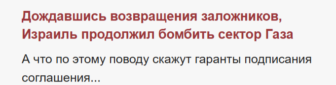 Сегодня из сектора Газа приходят сообщения о том, что ВВС ЦАХАЛ нанесли новую серию ударов по палестинской территории. К настоящему моменту известно, что, нарушая все договорённости (кстати, кто-нибудь вообще их видел оформленными в реальный документ?), израильская авиация отбомбилась по Рафаху. Это город на юге сектора Газа, куда на фоне превращения Израилем в руины самой Газы, в своё время устремились буквально сотни тысяч палестинцев. Совсем недавно, ликуя по поводу начала перемирия, многие эти люди начали возвращаться в Газу, однако ещё не менее четверти миллиона беженцев в Рафахе и его окрестностях остаются. Это не помешало ЦАХАЛ провести свои бомбардировки. Повод нашёлся.