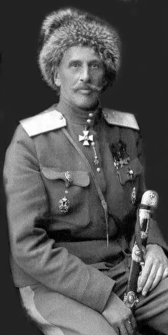 Войсковой Атаман Области Войска Донского, генерал от кавалерии Алексей Максимович Каледин, современники дали ему неофициальный «титул» «Вторая шашка России»
