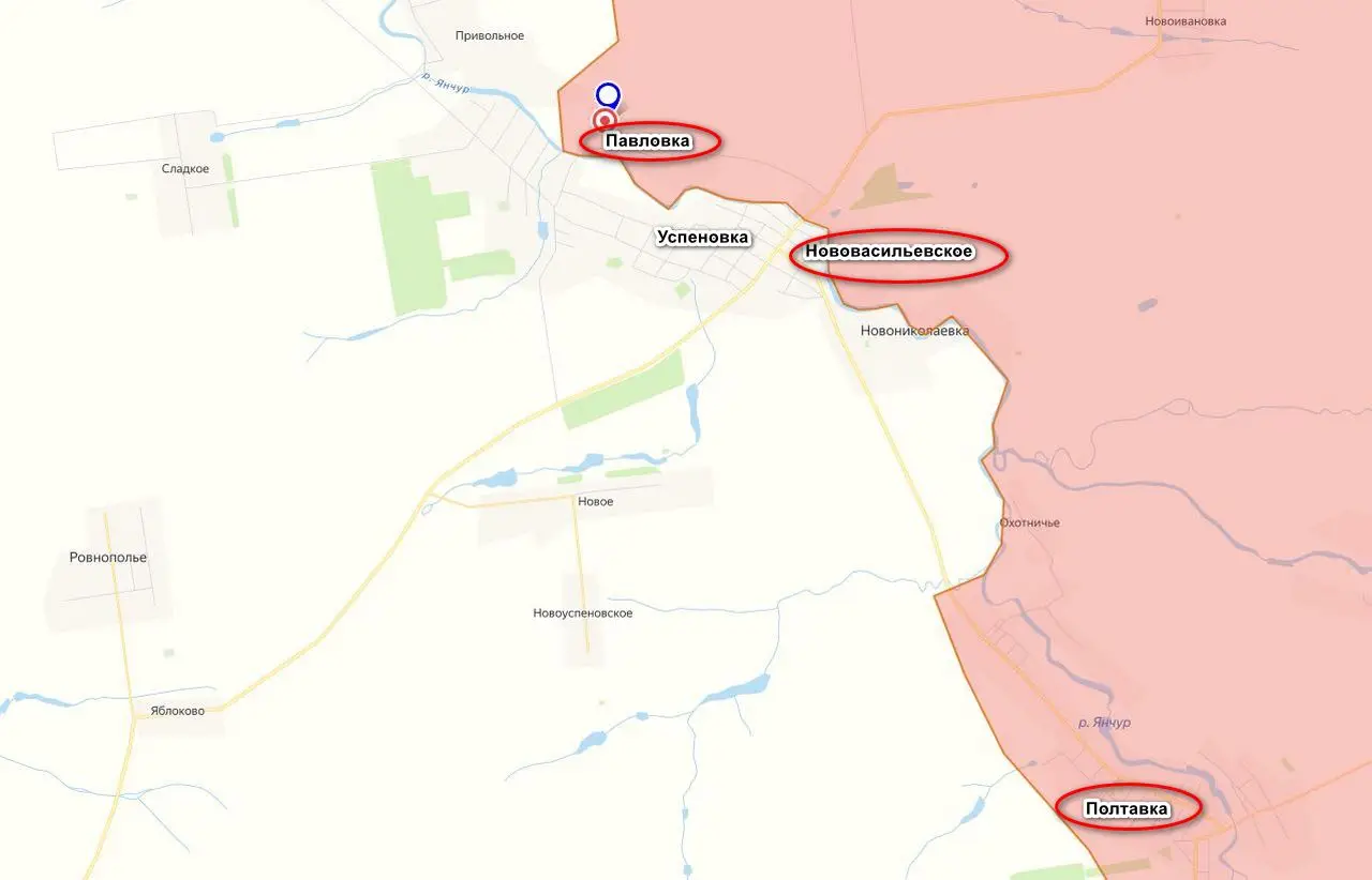 Подразделения группировки «Восток» вышли к реке Янчур еще на одном участке, взяв и зачистив Павловку. Освобождение данного населенного пункта очень важно для дальнейшего наступления на Успеновку, находящуюся на левом берегу реки. Этот довольно большой населенный пункт превращен противником в мощный укрепрайон.