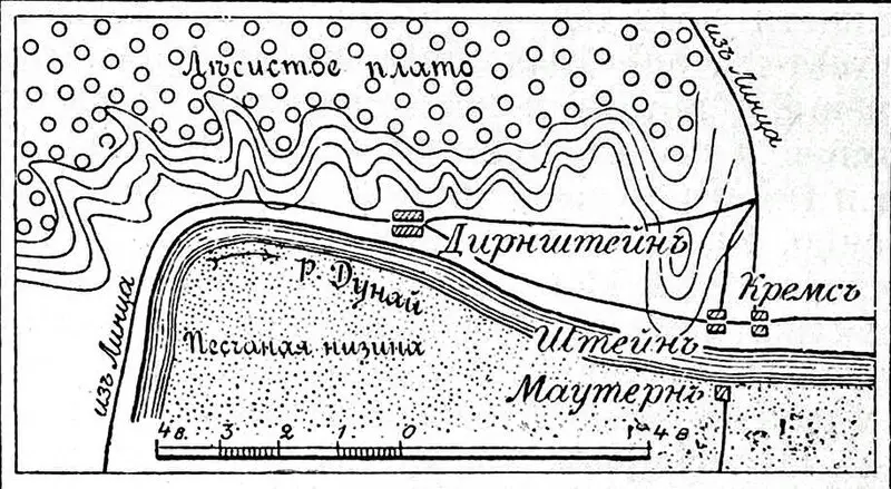 Таким образом, русские войска изготовились к атаке. Чтобы успокоить Мортье, Кутузов распространил слухи, что наша армия спешит в Моравию и остановилась в Кремсе только для кратковременного отдыха, а Милорадович у Штейна прикрывает отступление. Мортье поверил дезинформации и, не выслав разведки на левый фланг, поспешил из Дирнштейна к Кремсу.