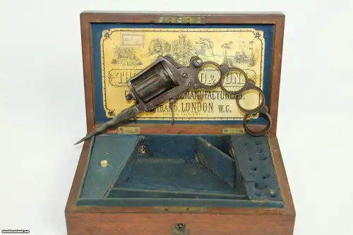 Вот уж где написан полный бред. Возможно, что сам Шарапов и не мог знать, что такой револьвер-кастет не мог быть «лефоше». Но братья Вайнеры? Так что ошибки делают, увы, все… Оружие, о котором идет речь, это карманный шпилечный револьвер, который выпускался бельгийской компанией Луи Дольне в Льеже в 1870-х годах. У Лефоше, правда, был револьвер с откидывающимся ножом-штыком под стволом, но… У него не было рукоятки-кастета и, кстати, где этот бандит брал для него шпилечные патроны?