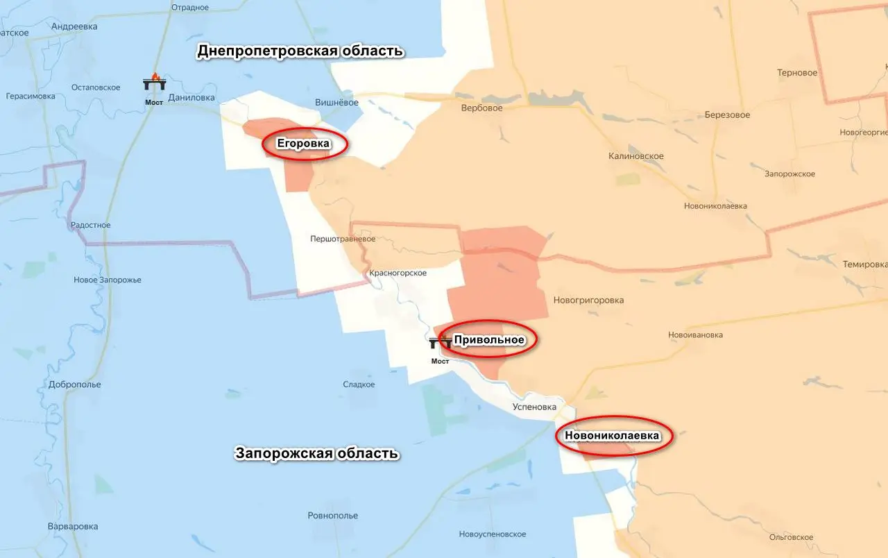По данным канала, в ходе наступления штурмовики 64-й отдельной гвардейской мотострелковой бригады взяли под контроль населенный пункт Егоровка Днепропетровской области, бойцы 60-й отдельной мотострелковой бригады освободили Привольное Запорожской области, а разведчики-гвардейцы подняли российский флаг в Новониколаевке также Запорожской области.