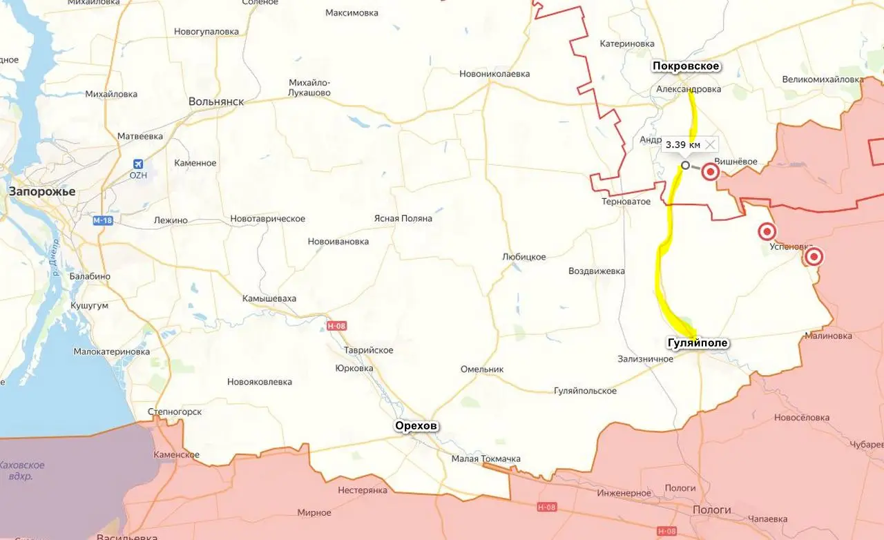 Кроме того, взяв Егоровку в Днепропетровской области, ВС РФ фактически перерезали трассу Гуляйполе — Покровское, по крайней мере она попала под огневой контроль. От села до трассы чуть больше 3-х километров, российские дроны там чувствуют себя вполне уверенно.