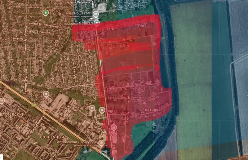 По поступающим с Покровско-Мирноградского направления сообщениям, Вооружённые силы России взяли под контроль большую часть села Гнатовка и вошли в соседнее село Рог. Это восточные пригороды Покровска (Красноармейска).