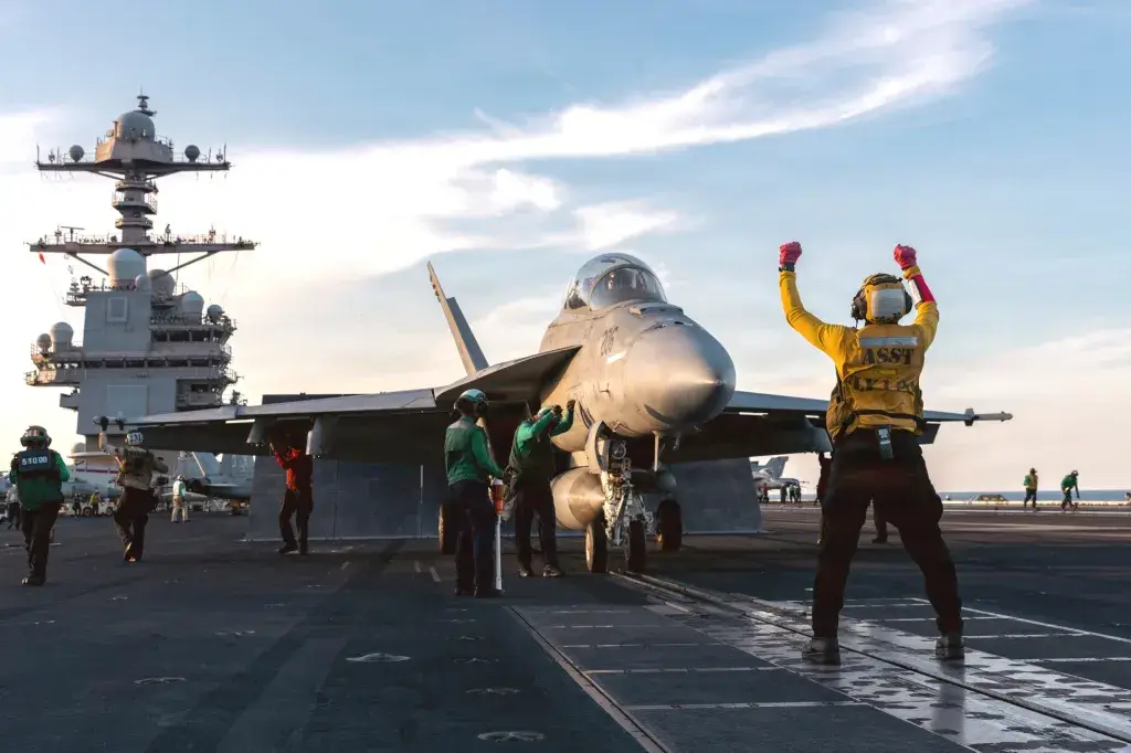 F/A-18F Super Hornet готовится к запуску с авианосца «Джеральд Р. Форд»