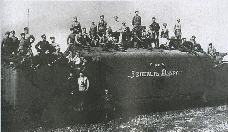 Бронепоезд Генерал Шкуро. Фотография сделана летом 1919 года