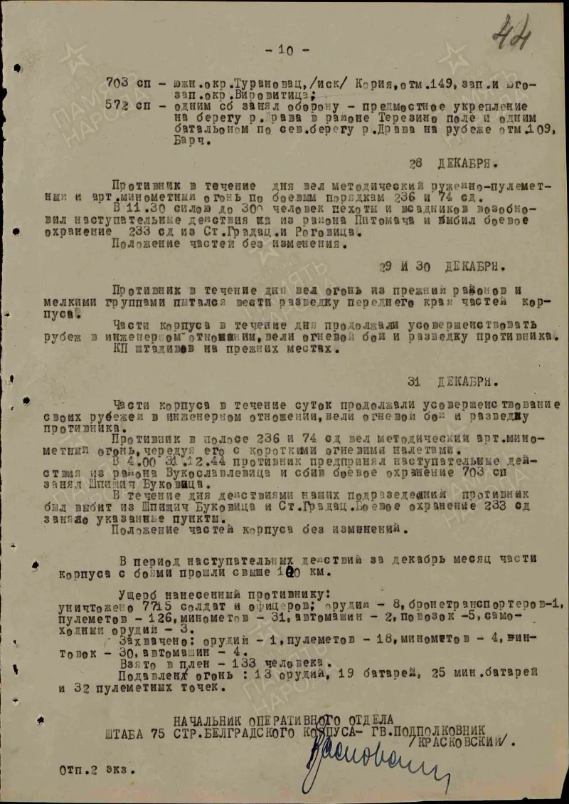 Кстати, именно на территории Хорватии 26 декабря 1944 года произошло незначительное боевое столкновение, которое некоторые называют «последним сражением русской Гражданской войны». В этот день 2-я казачья бригада вермахта атаковала позиции 233-й советской дивизии, которая входила в состав 3-го Украинского фронта. Этот бой запомнился всем невероятным ожесточением сторон, пленных без всяких разговоров расстреляли и те, и другие.