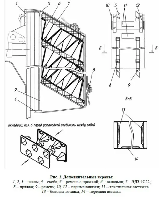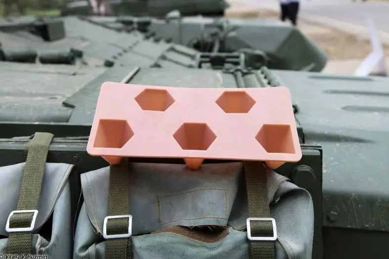 Речь о бортовых «мешках» или «рюкзаках» (динамическая защита в мягком корпусе) на бортах танков. Объёмные, прямоугольной формы, эти контейнеры были выполнены из износостойкой непромокаемой ткани и крепились к бортовым экранам танка поверх штатной динамической защиты с помощью тканевых ремней через специальные петли. Внутри — специальные упоры в виде пластиковых изделий, напоминающих чем-то контейнеры для яиц, обеспечивающие нужный наклон элементов динамической защиты.