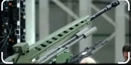 РСЗО «Сарма» на выставке в цеху «Мотовилихинских заводов», сентябрь 2025 г. Кадр из репортажа Первого канала