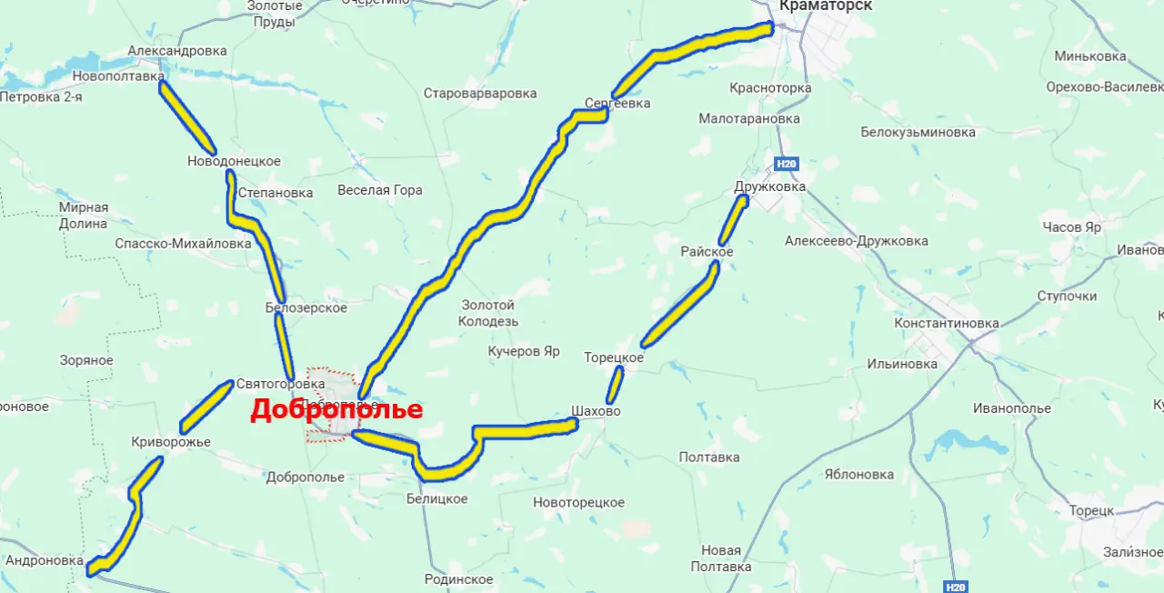 От Доброполья и окрестностей идут сразу несколько автомобильных дорог, включая две дороги в направлении Славянско-Краматорской агломерации. Также это дорога на север - в сторону Александровки, через которую есть транспортная связь с Харьковской областью. Сохраняется контроль ВСУ и над дорогой, которая ведёт к Доброполью из Днепропетровской области.