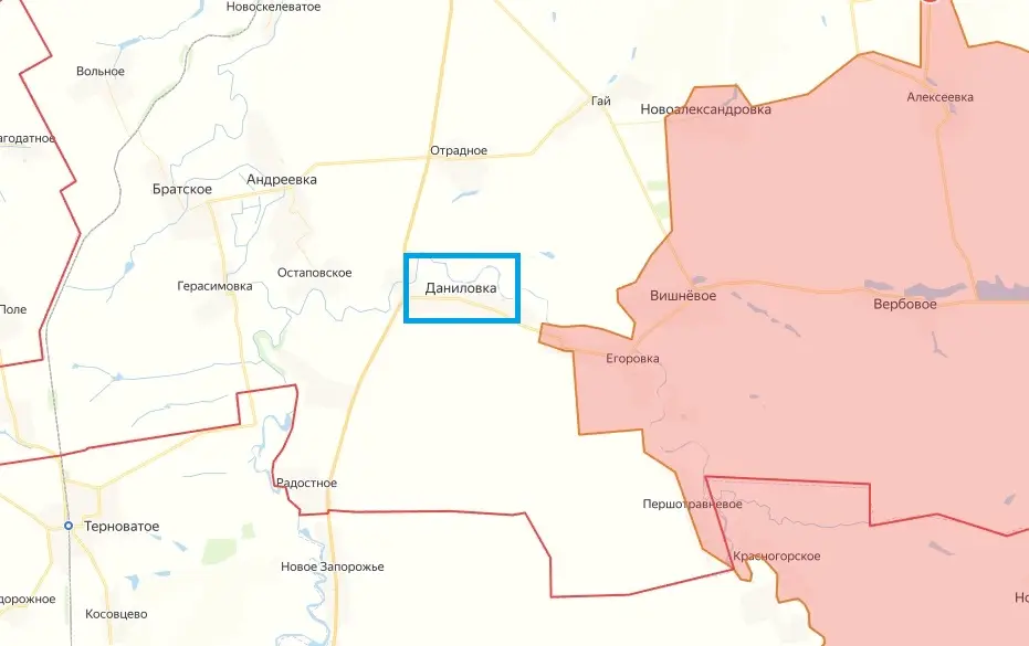 В настоящее время ожесточенные бои идут в районе населенного пункта Даниловка. Подразделения ВС РФ давят на противника одновременно с юго-восточного и восточного направлений, чтобы перерезать ключевой логистический маршрут, проходящий западнее села. Закрепление на западных подступах к Даниловке откроет возможность для последующего продвижения вглубь линии обороны противника. Успех на этом отрезке фронта, помимо прочего, позволит разорвать северные коммуникации противника с гарнизоном в Гуляйполе, вследствие чего группировка ВСУ в этом районе будет фактически изолирована. При этом потеря даже небольших участков в районе Даниловки постепенно дестабилизирует всю линию обороны противника. Подразделения армии России последовательно расширяют зону контроля, занимая господствующие высоты и участки вдоль дороги.