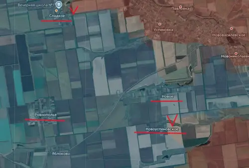 О выходе штурмовых подразделений ВС РФ к Сладкому и Новому сообщалось в воскресенье, 9 ноября. Тогда же прошла информация, что под наш контроль перешло село Новоуспенское. К сожалению, пока это не подтвердилось, скорей всего, продолжается зачистка населенного пункта. Думается, о его освобождении сообщат сегодня-завтра.