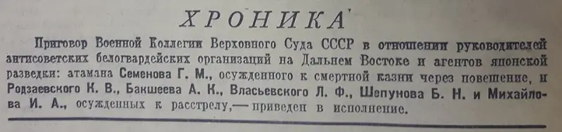 В следующей статье мы продолжим рассказ об атамане Григории Семенове, поговорим о его участии в гражданской войне на территории Сибири, эмиграции, продолжении сотрудничества с японцами. О справедливом возмездии и бесславной смерти кровавого атамана.