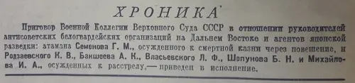 Между тем, на состоявшемся 16 февраля 2013 года в Чите Совете самозваных «атаманов» ряженых забайкальских казаков рассматривался вопрос «о подготовке реабилитации атамана Г. М. Семёнова».