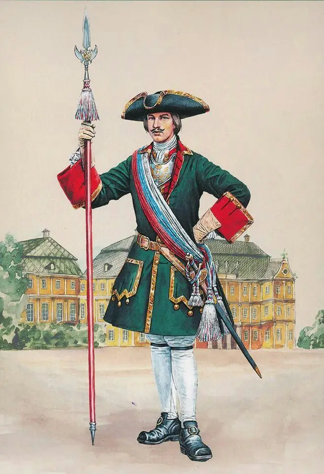 Состояла петровская гвардия преимущественно из дворян. Только после больших потерь в сражениях в гвардейские полки стали брать пополнение из армии и рекрутских наборов. Более того, каждый дворянин, поступавший на военную службу, прежде чем стать офицером армии, должен был прослужить рядовым в одном из гвардейских полков до тех пор, когда государь лично не утверждал присвоения ему офицерского звания. То есть служба в гвардии заменяла тогда обучение в военно-учебных заведениях.