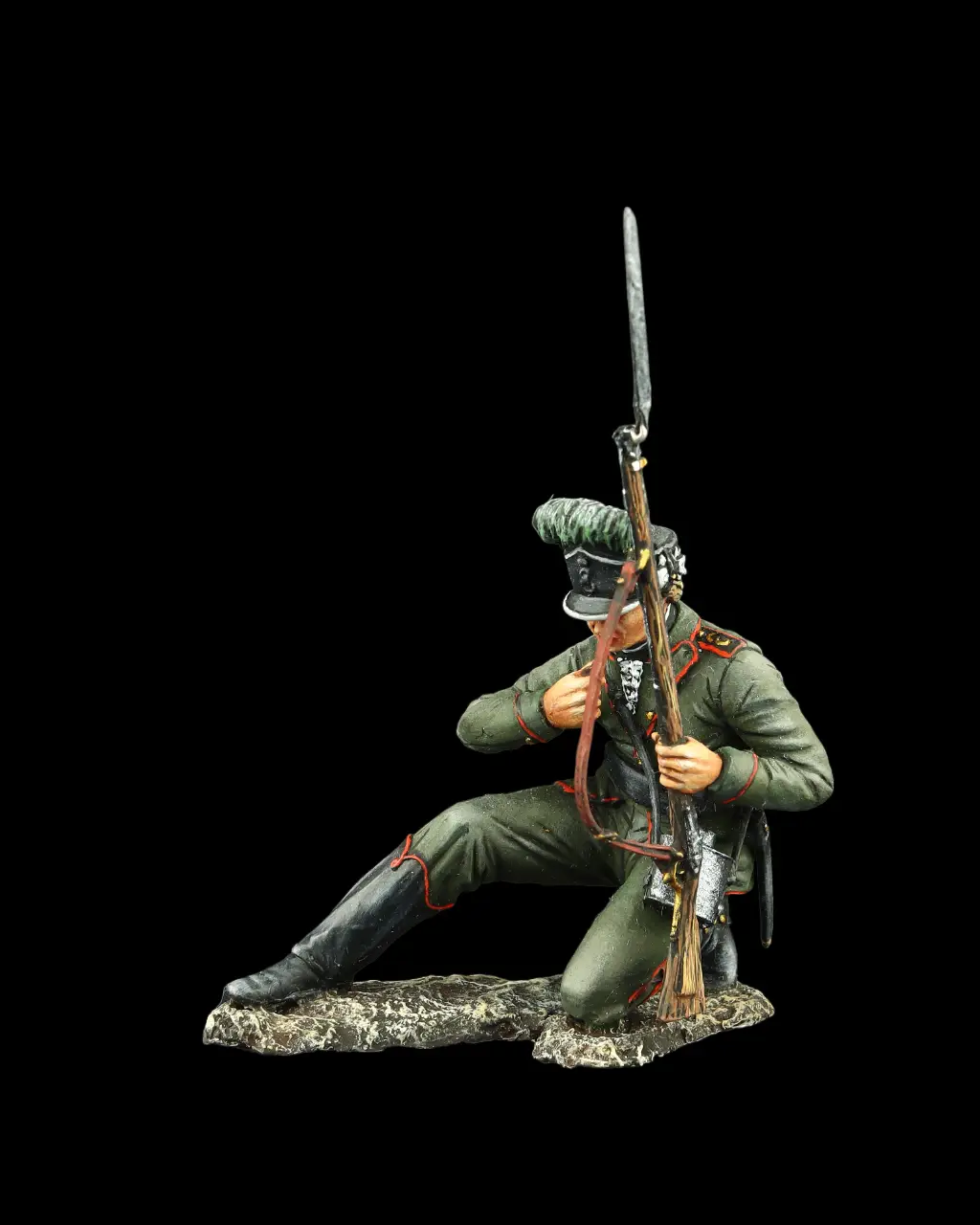 Егерь Лейб-Гвардии Измайловского полка выполняет команду «Скуси патрон!» 1788-1796 гг. Производители: «Silver Dream Studio» и «Chronos-Miniatures»