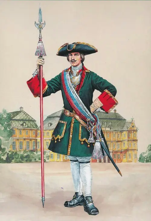 Ну а первым русским гвардейцем по традиции считается Сергей Леонтьевич Бухвостов, записавшийся в «потешные» в 1683 году. В 1692 году «потешных» свели в 3-й Московский выборный полк под началом полковника А. М. Головина. А потом его разделили сразу на два полка: Преображенский и Семёновский, названные так по местам их квартирования. В 1700 году оба полка на западный манер назвали лейб-гвардейскими (от нем. «Leib» — «тело»). Этим подчеркивалась их приближенность к особе государя и дарованная им счастливая обязанность по его охране.