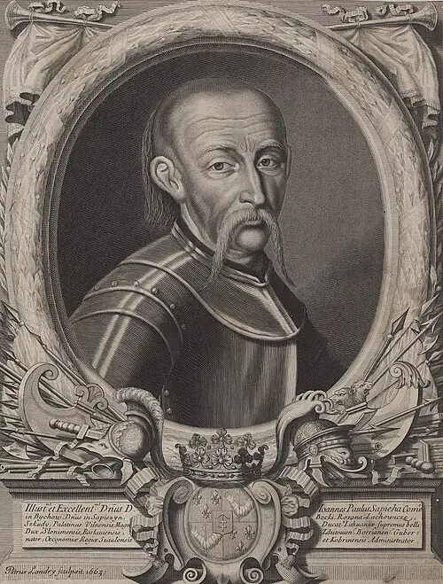 Павел Ян Сапега (1609 — 1665) — государственный и военный деятель Речи Посполитой. Представитель рода Сапег — одного из богатейших и влиятельнейших семейств в Великом княжестве Литовском. Великий обозный литовский (1638), великий подстолий литовский (1645), воевода витебский (1646—1656), гетман великий литовский (1656—1665) и воевода виленский (1656—1665). Французский художник-гравёр Пьер Ландри