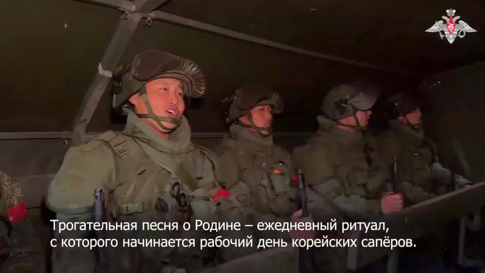 Подробно о работе северокорейских военных специалистов рассказывается в материале газеты «Красная звезда». Министерство обороны России опубликовало видеоролик, показывающий тренировку военнослужащих КНА под руководством наших военных инженеров на полигонах, их выезд на выполнение задач и работу по разминированию. В кузове машины северокорейские саперы всякий раз поют трогательную пеню о Родине.