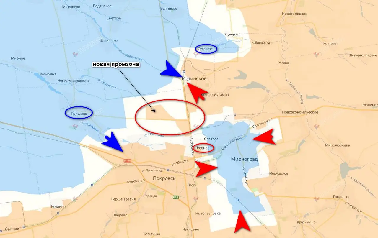 В самом Покровске украинских военных практически не осталось, если только небольшие группы, не успевшие выйти. У них всего два выхода — плен или ликвидация. Пытаются выйти в ночное время, но в основном сидят и ждут, когда Сырский прорвется и разблокирует город. Атаки идут со стороны Гришино, оттуда активно штурмует 425-й штурмовой полк «Скала» ВСУ. Но безуспешно. В Родинском идут ожесточенные бои, противник пытается закрепиться в северной части города.