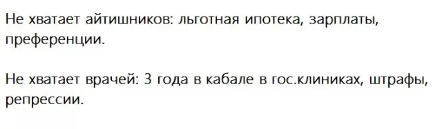 Когда государство фактически выводит профессию медицинского работника из конкурентного поля с частными (коммерческими) клиниками, возникает большой соблазн не трогать заработную плату. Вообще не трогать. Зачем, если молодой врач три года никуда не сбежит? А через три года, когда он обязательно сбежит, на его место придет новый выпускник медицинского вуза. И так далее.