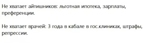 Три обязательных года в бюджетном учреждении после медицинского диплома, как видим, вынужденная мера государства, которое не готово повышать заработную плату медицинским работникам до приемлемого уровня. И дело не только в оплате труда. В государственной медицине нет установленных норм поддержки молодых врачей. Например, отсутствуют подъемные пособия или льготная ипотека.