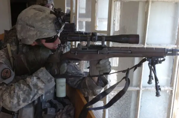 Принятая на вооружение в 1959 году винтовка M14 сочетала в себе элементы проверенной конструкции M1 Garand с современными усовершенствованиями, включая отъёмный магазин и совместимость с патроном 7,62 НАТО. Это позволило солдатам вести более продолжительный огонь, сохраняя при этом его точность и мощность на сравнительно большом расстоянии. M14 хорошо зарекомендовала себя в условиях открытого боя, например в Европе, но и у неё нашлись свои недостатки. При весе более 4,5 кг с полным магазином M14 была тяжёлым оружием, и ей было сложно манипулировать в ближнем бою.