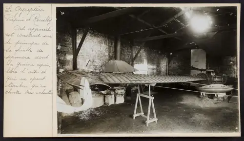 В 1913 году «Куколку» построили, но тут началась Первая мировая война, и полевые испытания задержались из-за этого до 31 марта 1915 года. Провели их на небольшом озере в департаменте Кот д'Ор — кстати говоря, хорошо, что проводили их на озере. Оказалось, что мощности мотора катастрофически не хватает — частота оборотов лопасти монокоптера оказалась недостаточной для взлета.