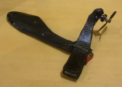 В итоге создать именно такое летающее устройство у компании не удалось, но оно по-прежнему находится в разработке. Правда, длина его лопасти достигает 17 сантиметров; а на выставках демонстрируется еще более крупный экземпляр с 40,6-сантиметровым крылом. И вот на нем-то и тестируется система его управления. При чрезмерной длине этот дрон еще и слишком тяжел и весит 227 граммов, хотя ту же, скажем, видеокамеру и поднимает исправно. Реактивный двигатель пришлось заменить на микроэлектромотор с воздушным винтом, который разместили на законцовке лопасти.