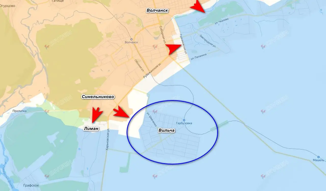 На Волчанском направлении продолжаются ожесточенные бои, они идут как в самом городе, так и в его окрестностях. Штурмовые подразделения «северян» выдавливают врага из города и прилегающих лесных массивов. Синельниково уже давно занято российскими войсками, сейчас идет зачистка лесов, наши выходят к Лиману и Вильче.