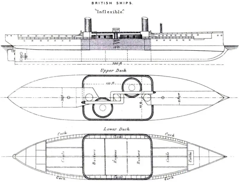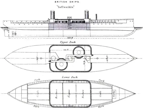 - Весьма основательный и хороший для своего времени «Наварин», какового можно считать родоначальником классических броненосцев в отечественном флоте;