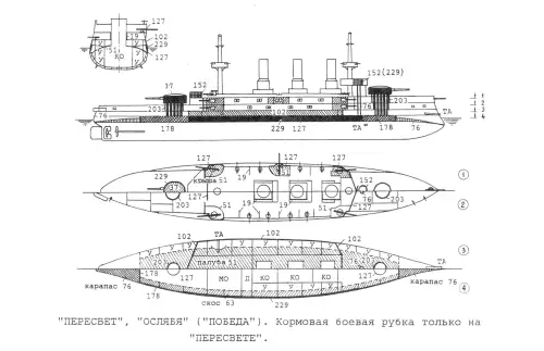 Интересно, что А. Г. фон Недермиллер числил на Дальнем Востоке только «Пересвет» и «Ослябю», в то время как планировалось строить еще три корабля этого типа. Объяснял же он это так:
