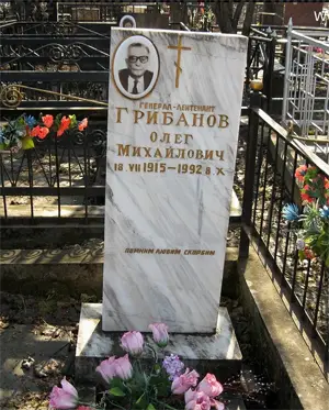 Место захоронения О. М. Грибанова в Москве на Котляковском кладбище. Олег Михайлович Он никогда не занимал руководящую должность в советской номенклатуре, но продолжал оказывать большое и скрытое влияние в публичной сфере как писатель популярных шпионских романов под псевдонимом Олег Шмелев, основываясь на малоизвестных архивных документах КГБ...