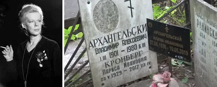 На фото слева: Лариса Кронберг в более поздние годы жизни. На фото справа: место ее захоронения на Ваганьковском кладбище...