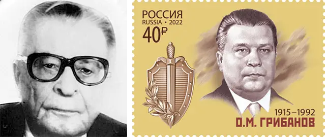 О. М. Грибанов (1915–1992). В 1965 году в звании генерал-лейтенанта из-за побега своего подчинённого Юрия Носенко* на Запад был уволен в запас по служебному несоответствию, лишен знака «Почетный сотрудник госбезопасности» и исключен из КПСС. Далее работал в системе Минздрава, откуда был уволен «за грубое нарушение финансовой дисциплины». Далее работал директором завода ЭВМ и в одном из центров Госкомитета СССР по науке и технике.