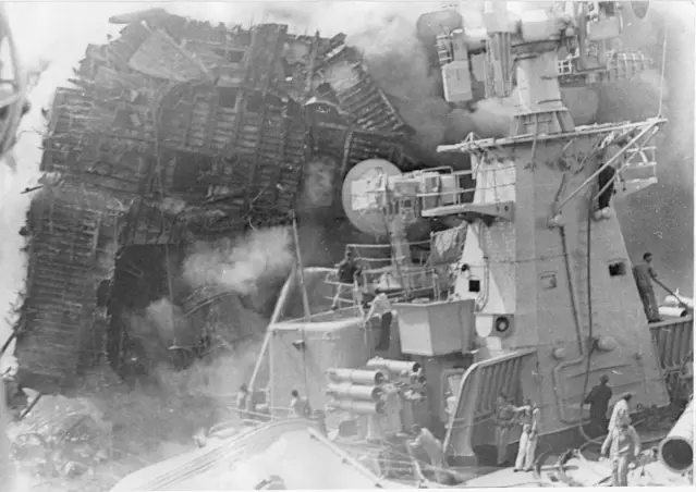 Роковым, как выяснилось, недостатком данного комплекса было расположение погребов боезапаса выше ватерлинии — в случае пожара их было невозможно затопить. Ну и погреба зенитного ракетного, авиационного, артиллерийского вооружения, глубинных бомб и авиационного керосина были смежными, не разделялись коффердамами и находились поблизости от машинного отделения. Надстройки корабля, трубы и мачты были выполнены из алюминиево-магниевого сплава. В общем, к вопросам живучести корабля были вопросы, хотя и не принципиальные.