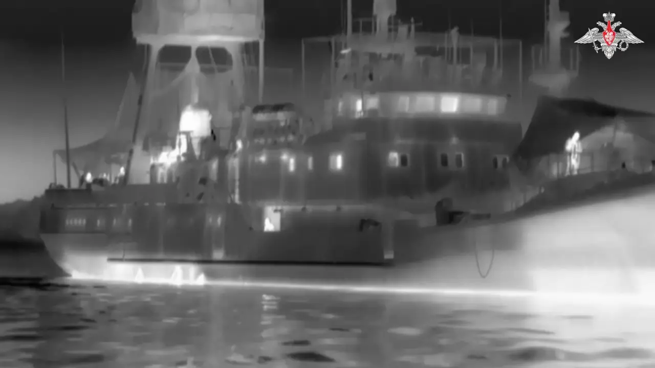 Украинский корабль в объективе российского БЭК. Фото Минобороны РФ