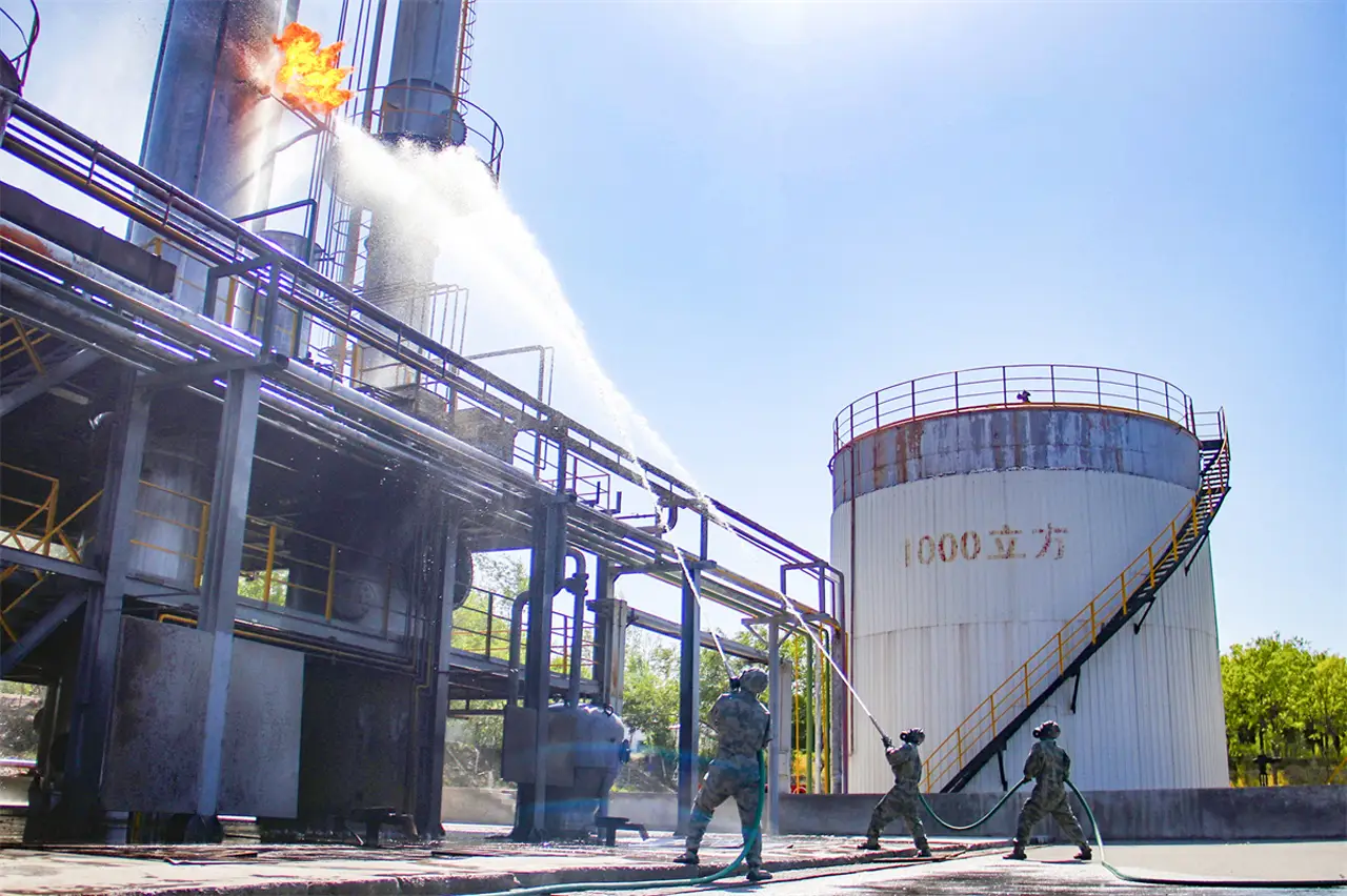 Обращает на себя внимание один из этапов учений. Состоял он в ликвидации пожара на хранилище топлива с одновременными замерами параметрами загрязнения воздуха продуктами горения.