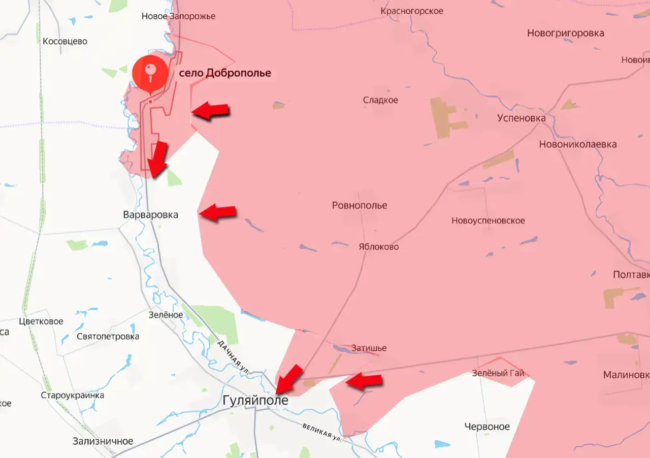 Продолжая наступление на Гуляйпольском направлении, Вооружённые силы России освободили очередной населённый пункт. Им стало село Доброполье (не путать с одноимённым населённым пунктом в ДНР).