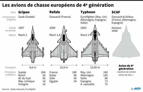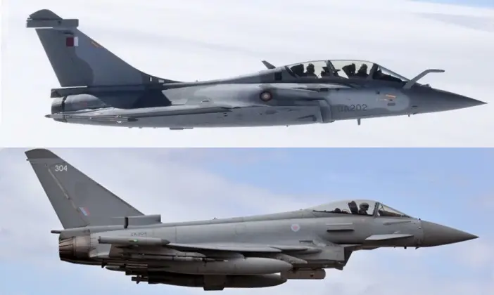 Eurofighter Typhoon и Rafale — это очень схожие во многом двухмоторные многоцелевые истребители поколения 4+ с треугольным крылом и передним горизонтальным оперением, обладающие неплохими манёвренными и скоростными качествами, радарами с активной фазированной антенной решёткой и разнообразным вооружением, в том числе и ракетами Meteor BVR. Они были созданы в рамках одного европейского проекта 1980-х годов: Франция занялась разработкой Rafale, а остальные участники создали Typhoon.