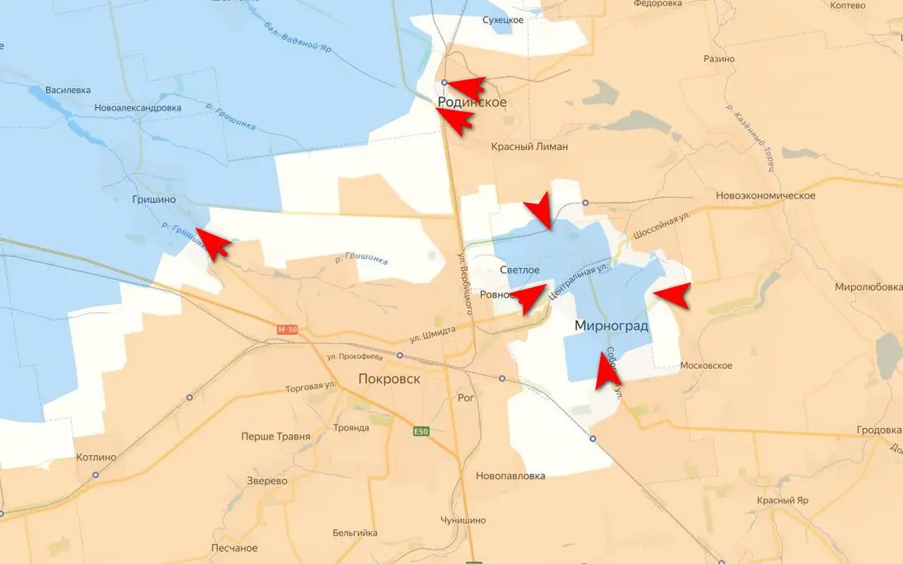 Российские войска практически выбили украинские формирования из Родинского и зашли в Гришино, фактически поставив крест на попытках ВСУ разблокировать окруженные в Мирнограде подразделения двух украинских бригад.